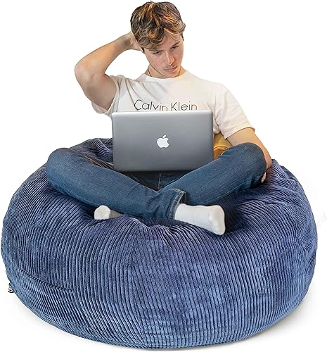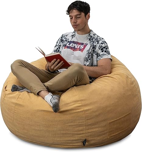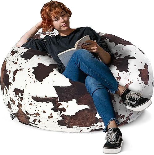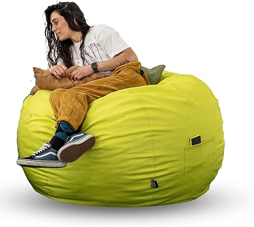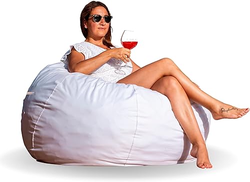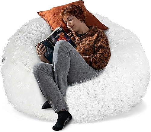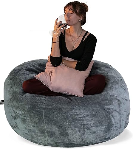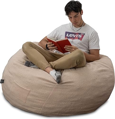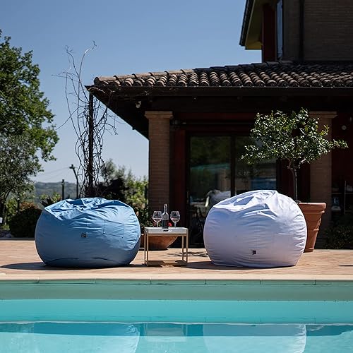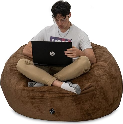 Fauteuil Gigant d'extérieur et intérieur avec Poche, Bean Bag Indoor & Outdoor XXL, Housse avec Rembourrage en mémoire de Forme, Pouf imperméable, Puff Doux 112 x 112 (Pelo Court Marron)