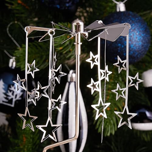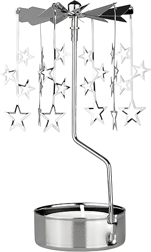 BRUBAKER Carrousel de Bougies à Chauffe Plat Argenté - Porte-Bougie Tournant en Métal Avec Étoiles - Décoration de Table pour Noël