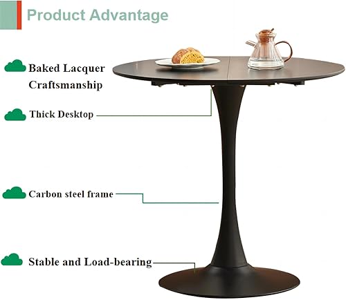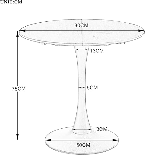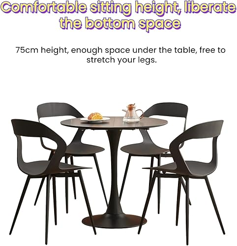 GrandCA HOME 80 cm Table à Manger Ronde, Bois d'ingénierie Fer, Noir, 80T x 80B x 75H cm