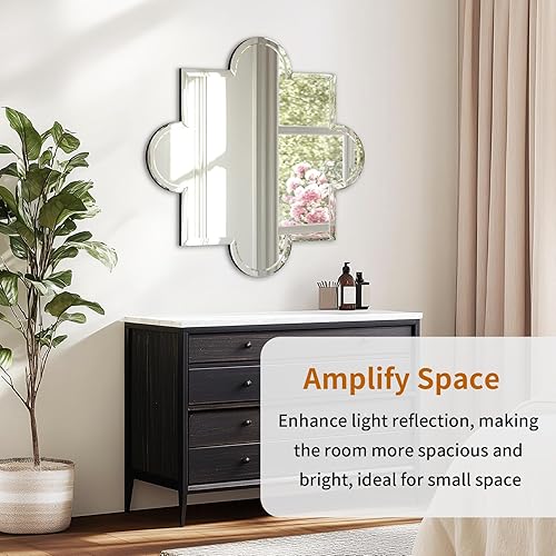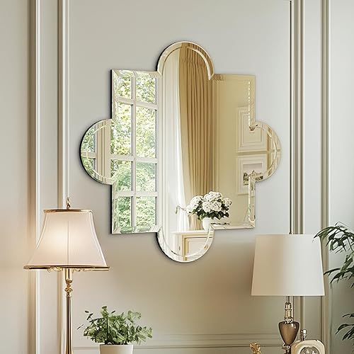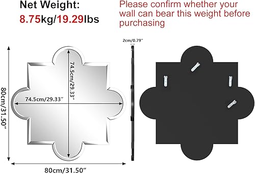 Artloge Miroir Mural Décoratif Design sans Cadre, Étoile Miroir Mural Salon en Verre Biseauté Grand Miroirs Muraux Irrégulier pour Salle de Bain Entrée Chambre Argenté Decoration Maison - Ø80cm
