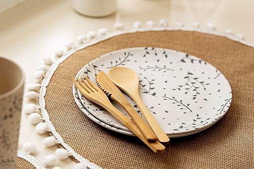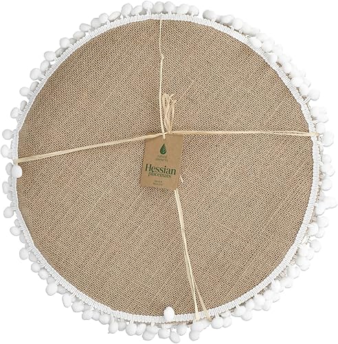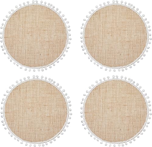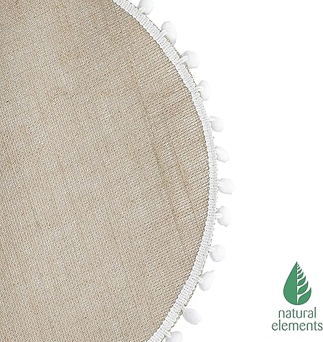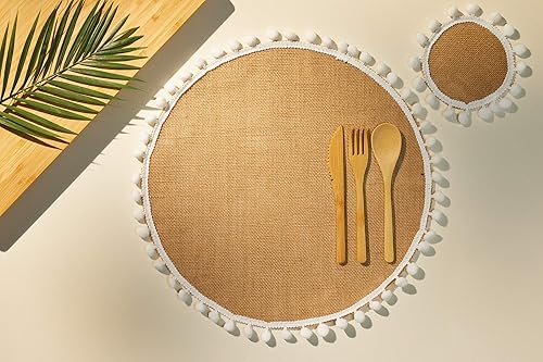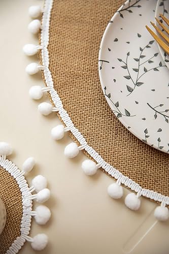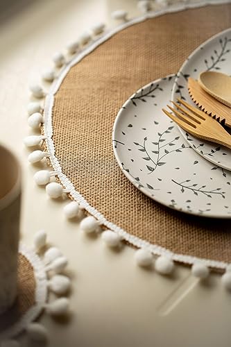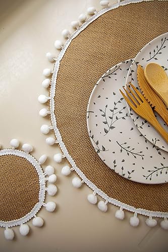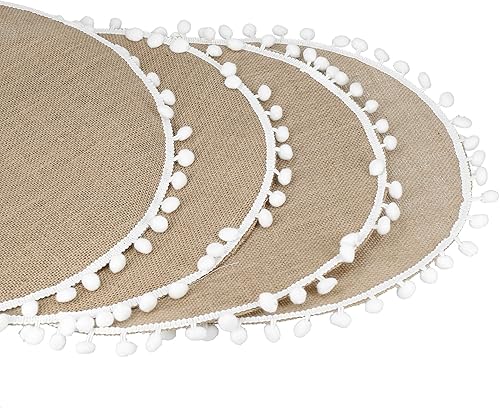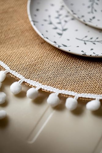 Natural Elements - Sets de Table en Jute avec Pompons Blancs Décoratifs, 38 cm, Lot de 4