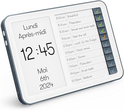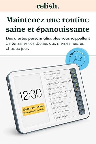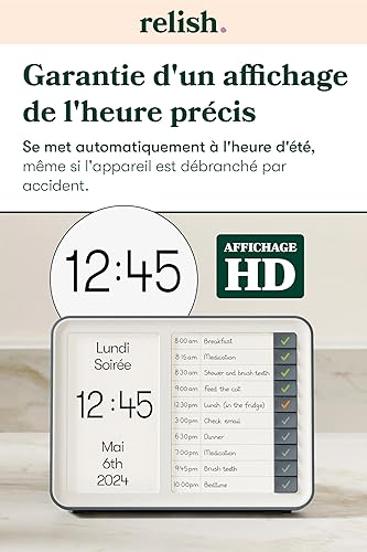 Relish - Horloge de démence avec concentrateur de tâches de routine quotidienne, calendrier numérique avec jour, date et heure, grand écran clair, liste des tâches quotidiennes