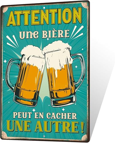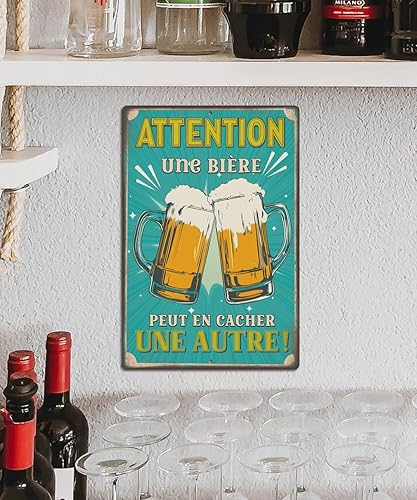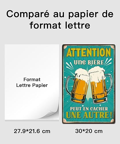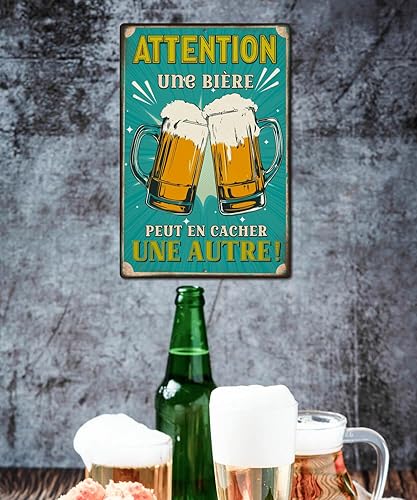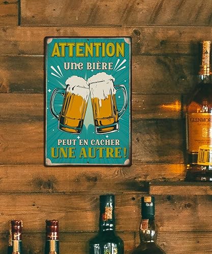 Putuo Decor Plaque Métallique Attention Une Bière, Panneau Déco Vintage en Aluminium, Idéal pour Bar et Cuisine, 30x20 cm