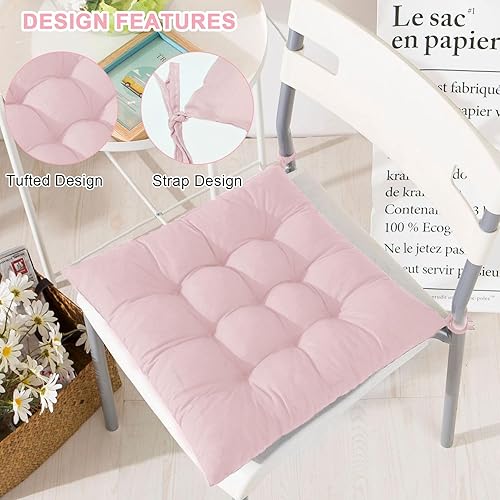 bechoanigel Lot de 4 Coussins de Chaise, Coussins D'assise 40 x 40 cm pour L'intérieur et L'extérieur, Ensemble de Chaise avec Attaches, Chaise de Bureau Balcon pour Salle à Manger Salon (Gris Rose)