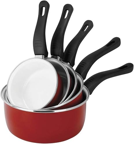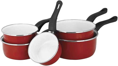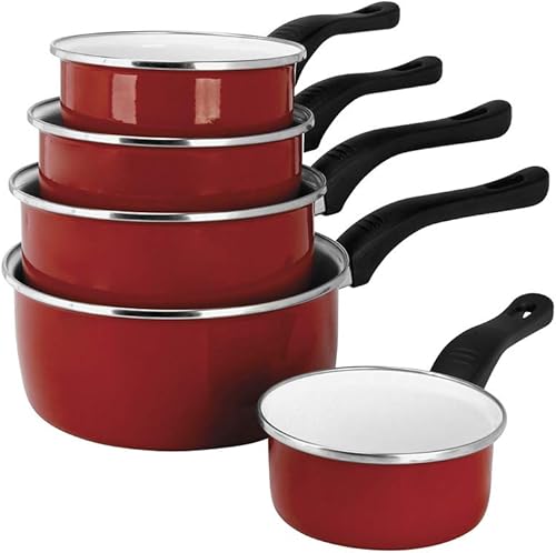 Lot de 5 CASSEROLES Email rouge Vermillon 12/14/16/18/20 cm, tous feux dont induction