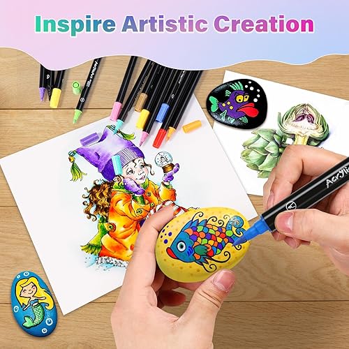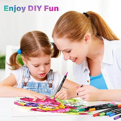 Diboniur 24 Couleurs Feutre Acrylique, Feutres Coloriage Adulte, Double Pointe Fine Stylo Feutre Aquarelle, Acrylic Marker pour Coloriage, Dessin, Peinture, Textile, Calligraphie, Bois, Verre, Pierre
