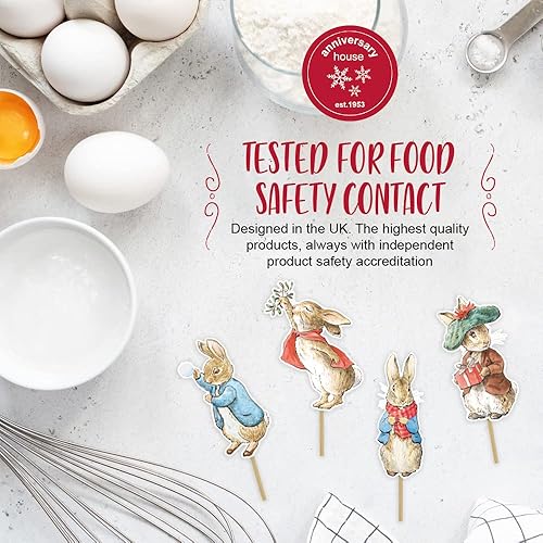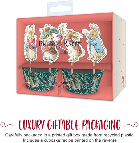 Anniversary House Peter Rabbit™ Kit de pâtisserie officiel de 36 pièces pour cupcakes de Noël, 12 décorations de gâteaux et 16 caissettes à cupcakes, ensemble de décoration de gâteaux, cadeau Beatrix