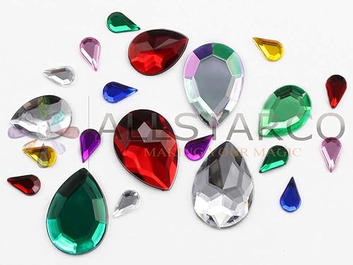 Allstarco Lot de 30 strass en plastique acrylique à dos plat en forme de larme pour la fabrication de bijoux, bijoux, cosplay, embellissements et travaux manuels,Rouge rubis H103