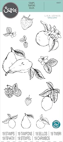 Sizzix Ensemble de 19 tampons transparents Botanical Fruit par Lisa Jones