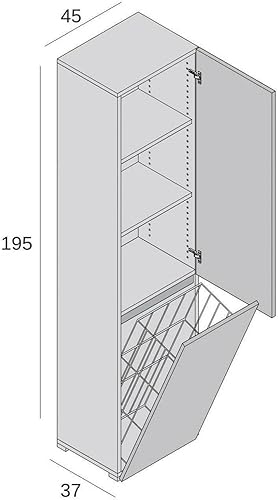 Dmora - Agapanto Armoire Polyvalente 2 Portes, buanderie 2 Portes, Colonne de Salle de Bain avec Panier à Linge, 100% Made in Italy, 45x37h195 cm, Blanc