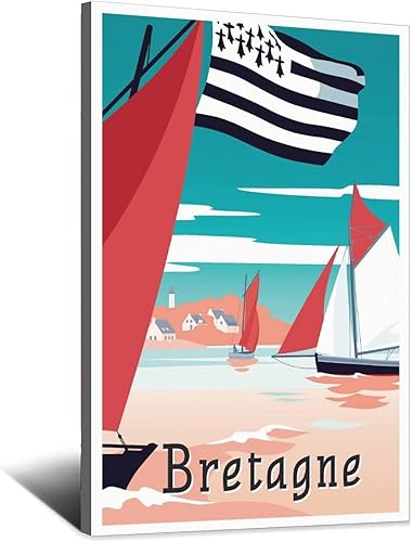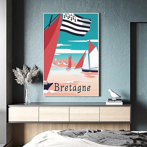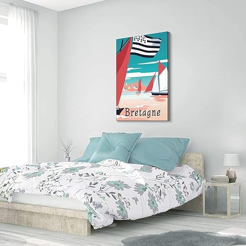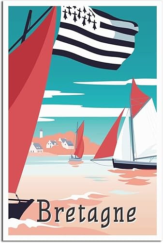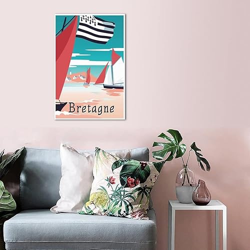 UEJD Bretagne Voilier Poster de voyage vintage Poster décoratif moderne pour chambre à coucher Toile Poster Poster Peinture Mural Art Cadeau, 24x36inchs(60x90cm)