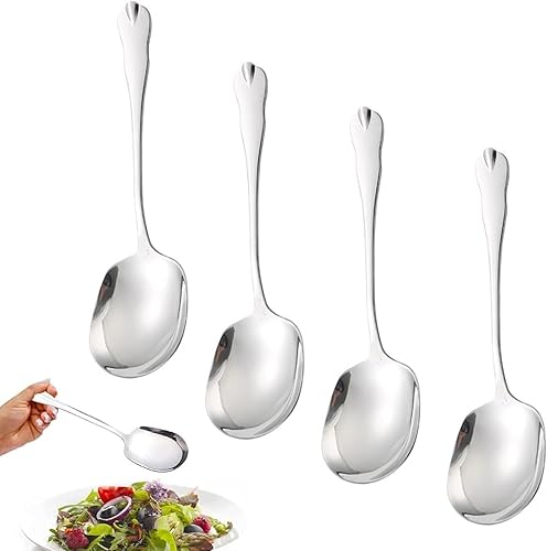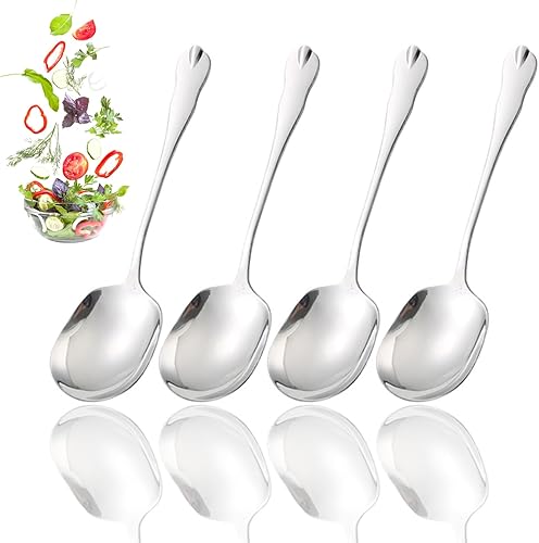 Lot de 4 cuillères de service en acier inoxydable - Couverts de service - Cuillères à dessert - Cuillères à salade - Idéales pour portionner les aliments dans les restaurants et les fêtes de famille