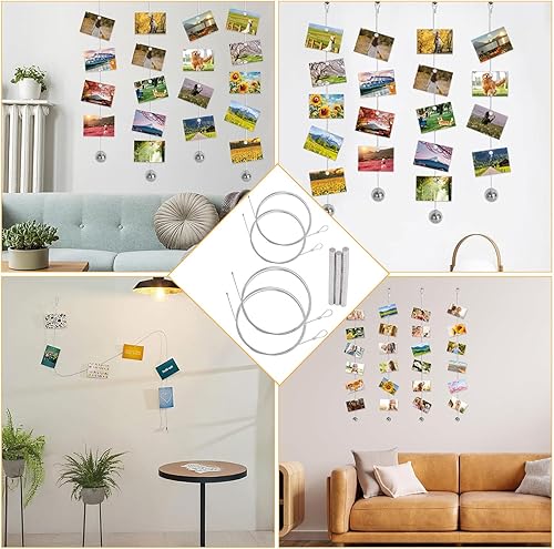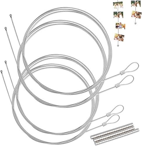 DXLing 4 Pièces Porte Photo Fil de Fer et Aimants 2m x 1.5mm et 2.5m x 1.5mm Câble Photo avec 72 Aimants Câble en Acier Inoxydable Tressé Fil pour Photo Suspendu Photo Magnétique