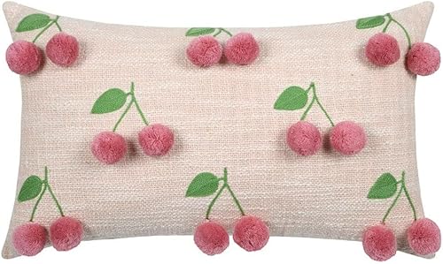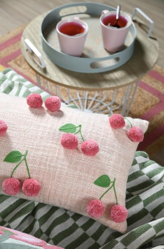 SCHÖNER LEBEN. Sweetlove Coussin cerises avec pompons Rose 30 x 50 cm