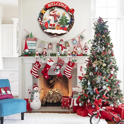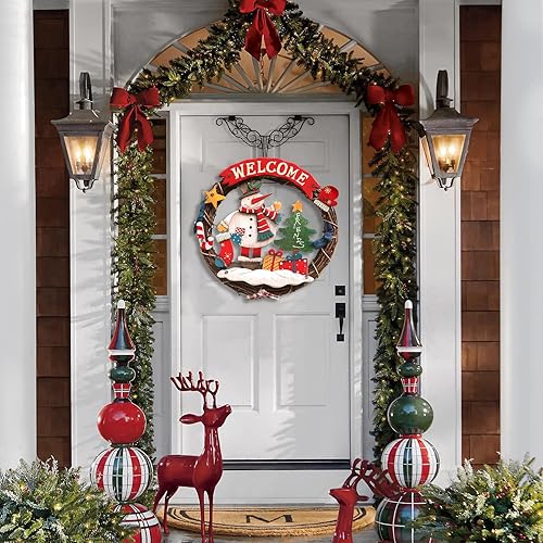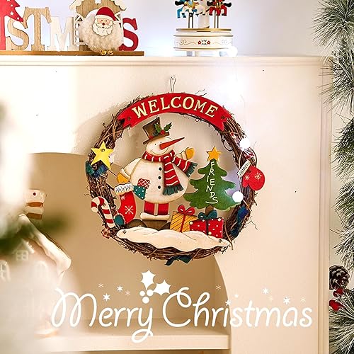 NLMWTI Couronne de Noël Tressée, Couronne Noel Porte Welcome pour Noël, Décoration de Noël à Suspendre env. Ø 25cm, Décorations de Noël