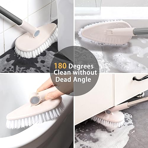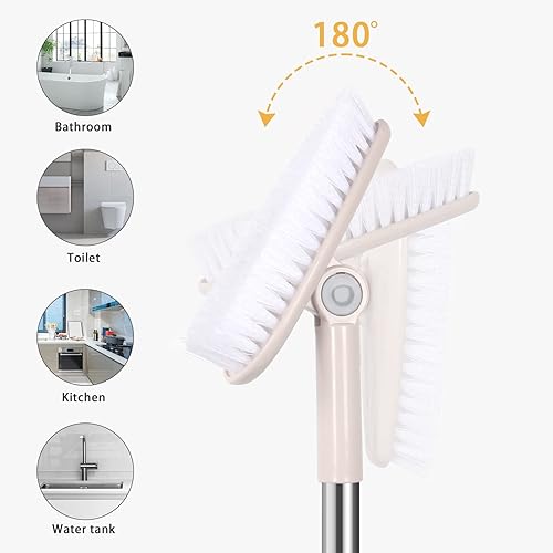 Brosse à récurer pour Sol de Salle de Bain, Baignoire, Douche, carrelage - Rotative - 16 cm de Large - 90 cm de Long - Manche à Pousser pour l'intérieur - pour Toilettes et Cuisine