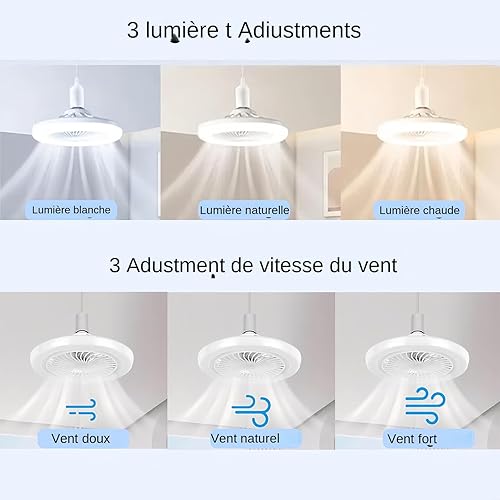 Générique Ventilateur Plafond avec Lumiere, E27 Ventilateur de Plafond avec ÉClairage LED, Télécommande 3 Niveaux Luminosité 3 Vitesse Eclairage, pour Salon, Salle à Manger, Chambre
