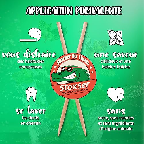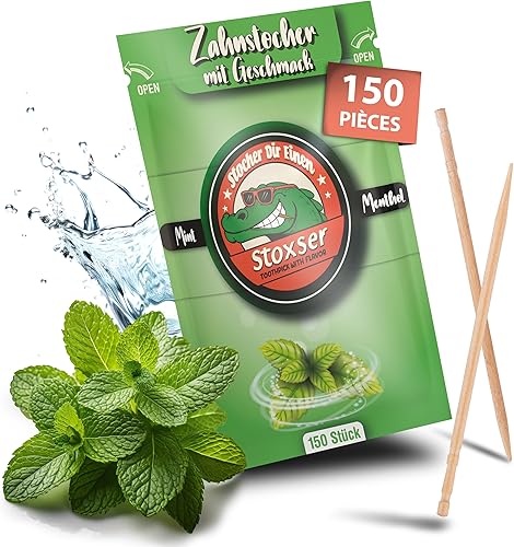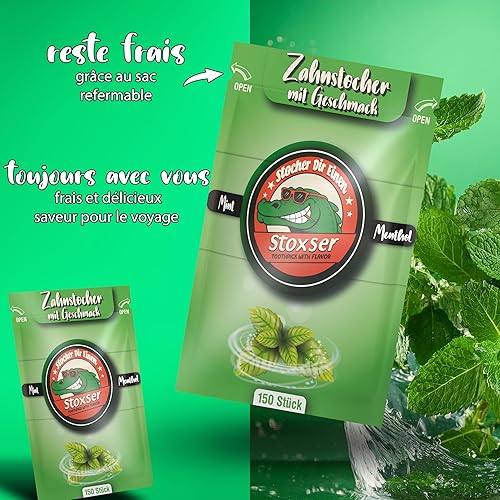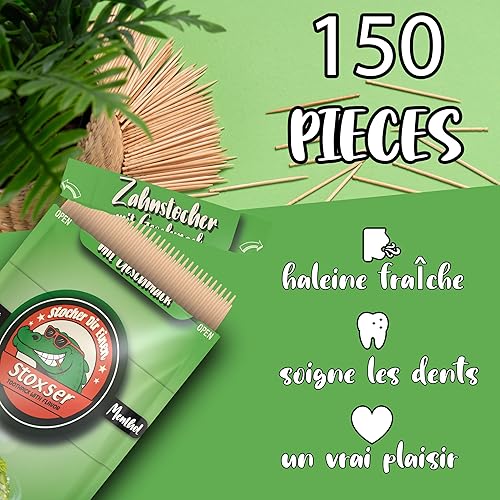 Stoxser Lot de 150 cure-dents avec goût menthe/menthol - Goût révolution - Cure-dents - Sans chewing-gum - Convient pour le dentifrice, le détartrant - Fil dentaire - Sans sucre