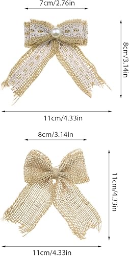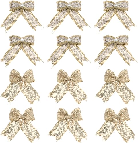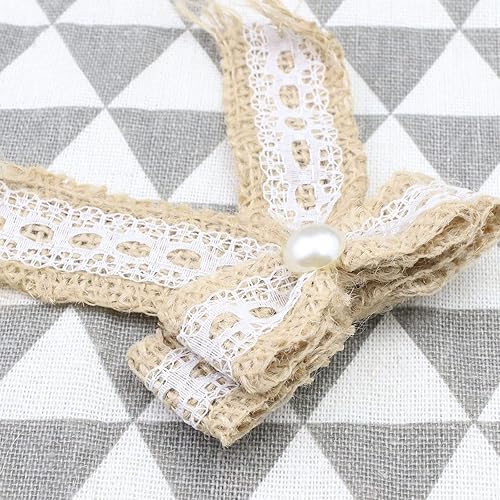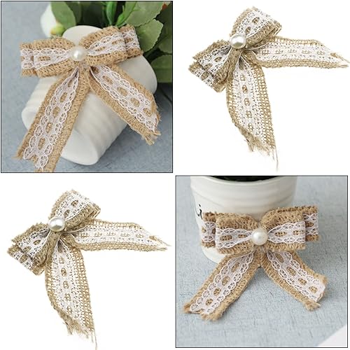 VGOL Lot de 12 nœuds en toile de jute avec dentelle blanche et perles - 2 styles pour loisirs créatifs, emballage cadeau, fête de mariage, décoration intérieure et extérieure