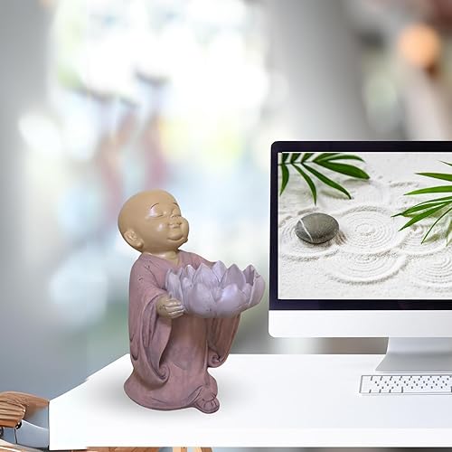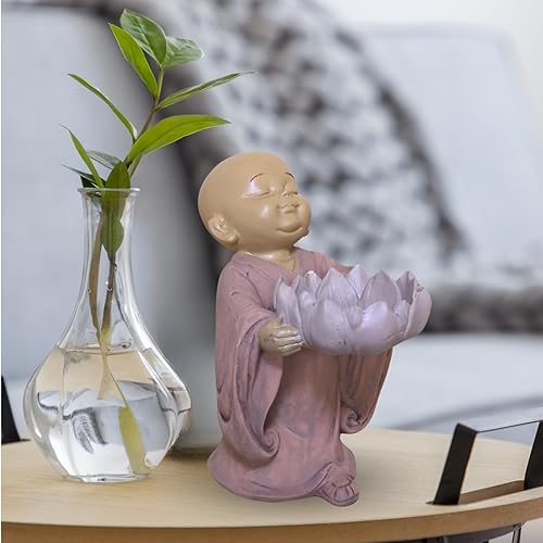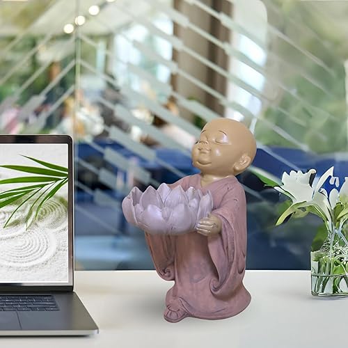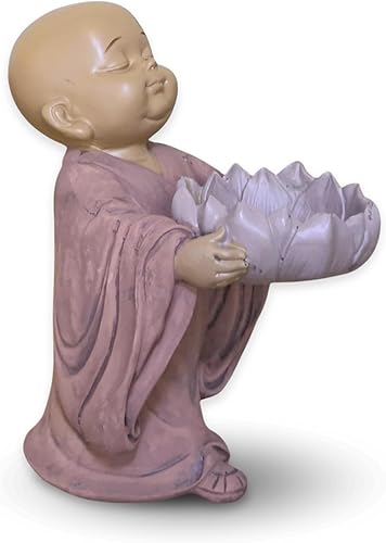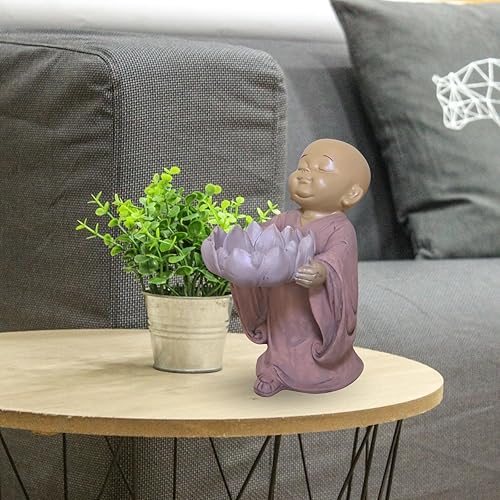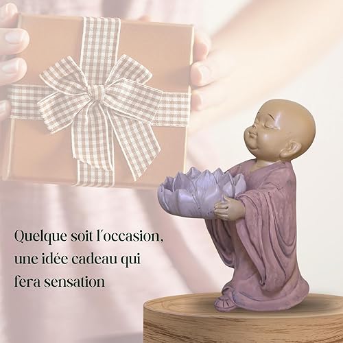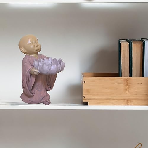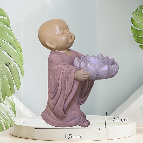 Statuette Bouddha Bougeoir – Porte Bougie Chauffe-Plat - Décoration Zen et Feng Shui – Objet Porte Bonheur – Idée Cadeau Zen – Hauteur : 13cm – Couleur Beige et Vieux Rose – Zen’Light