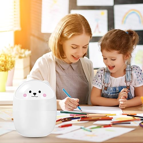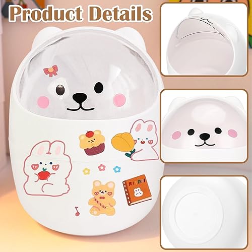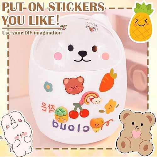 Wisebom Mini Poubelle de Bureau avec Couvercle Mini Poubelle de Table Mignonne Poubelle Petite Poubelle de Bureau Petite Dessin Animé Poubelle avec Autocollant Décoratif pour Maison Chambre Bureau