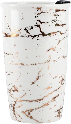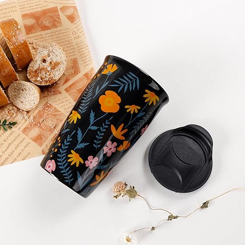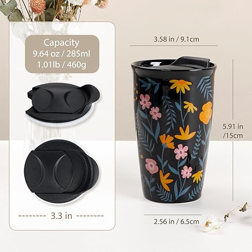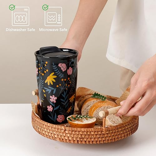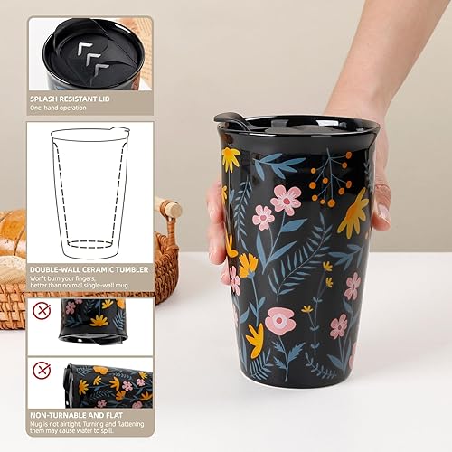 Umlaca Tasse à café de voyage en céramique avec couvercle pour boissons chaudes, tasse isotherme à double paroi, 350 ml, sans BPA, passe au lave-vaisselle, pour la maison, le bureau, la voiture, pour