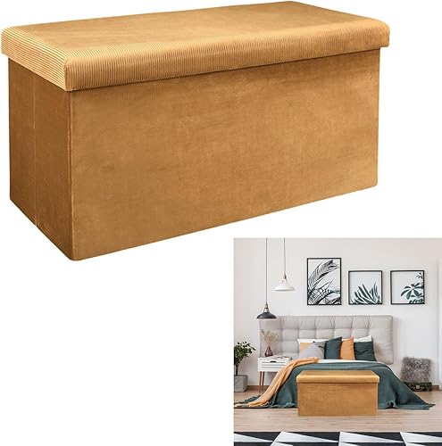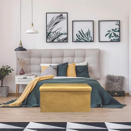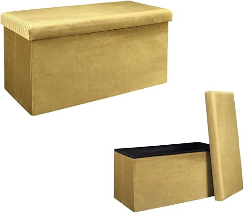 HOME DECO FACTORY The Hd6817 Coffre Banc Pliable, Bois, 77 X 38 X 38 cm Jaune