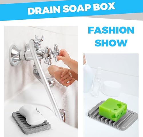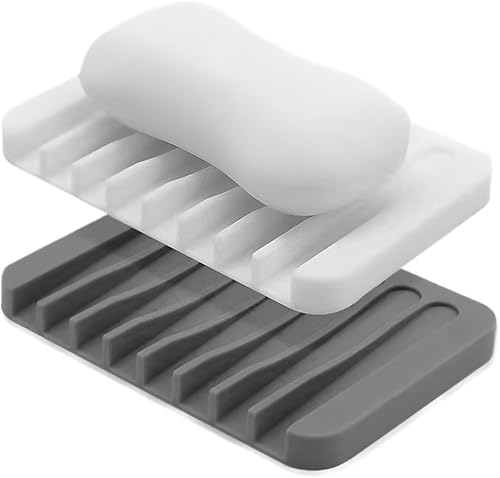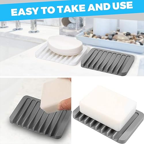 2 Pièces Porte Savon,Garder Les Barres de Savon au Sec Porte-Savon Antidérapant,Porte Savon Salle de Bain,Porte Savon Douche,Support Savon,pour Salle de Bain,Cuisine,Blanc + Gris