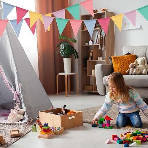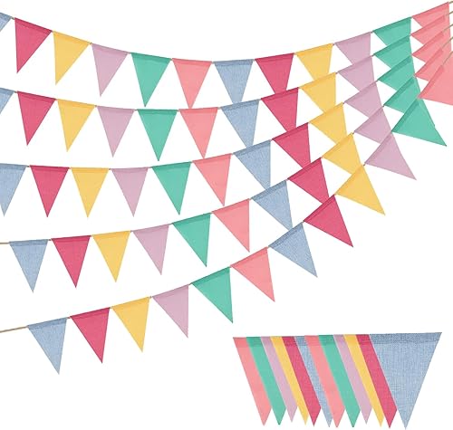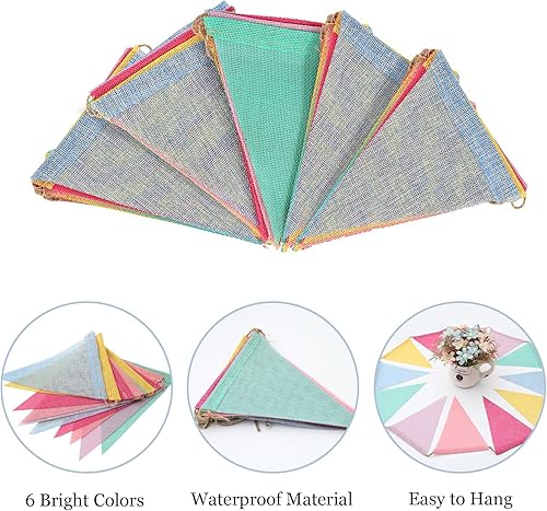 LUBOXIN Guirlande de Fanions en Tissu de 20 m, Multicolor Fanions en Imitation Lin Imperméable pour Fête d'anniversaire, Décoration de Carnaval, Décoration de Mariage et Décoration de Festival