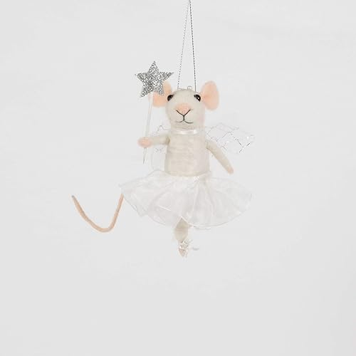 Sass & Belle Fée souris avec baguette étoile en feutre à suspendre décoration blanche - ornement de Noël