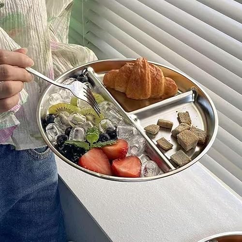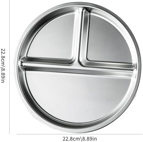 Service de table en acier inoxydable pour enfants, assiettes incassables pour tout-petits, plateau alimentaire divisé, assiettes à dîner avec contrôle des portions avec 3 compartiments, pour adultes