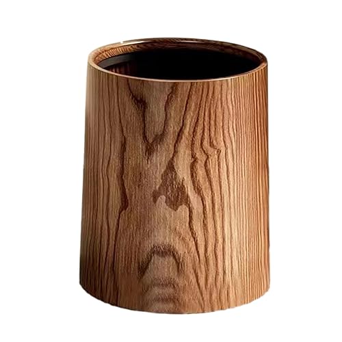 Bkazwe Poubelle de salle de bain avec couvercle en grain de bois - Poubelles rotative minimaliste avec interne amovible Corbeille à papier Vintage - Convient pour les ordures de bureau chambre