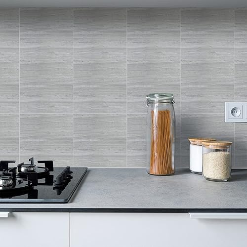 LWLFC Credence Adhesive pour Cuisine 20X20 Marbre Gris Clair Stickers Cuisine Stickers Muraux Cuisine Carrelage Adhesif Mural Stickers Salle de Bain Dalle Pvc Adhesive Murale (12 Pièces)