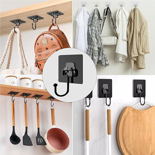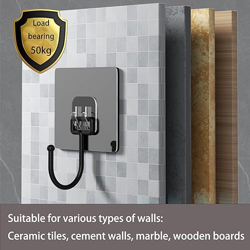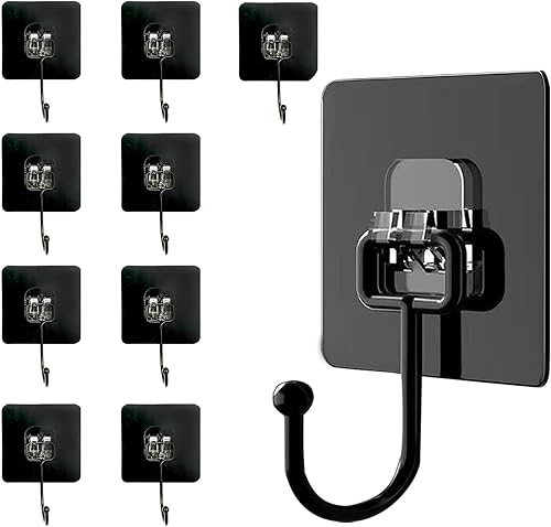 Crochets Auto-Adhésifs,Crochet Adhesif Mural,Crochet Adhésif Plafond,Lot De 10 (Charge Maximale 50 Kg) Crochets Extra Forts Noirs Étanches Et Invisibles Pour Serviettes, Plafond, Mur, Cuisine, Clés, V