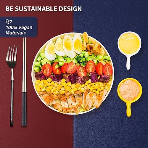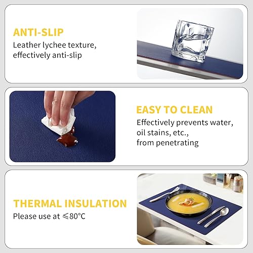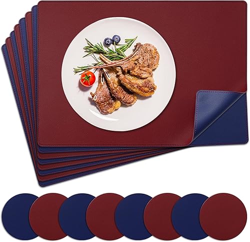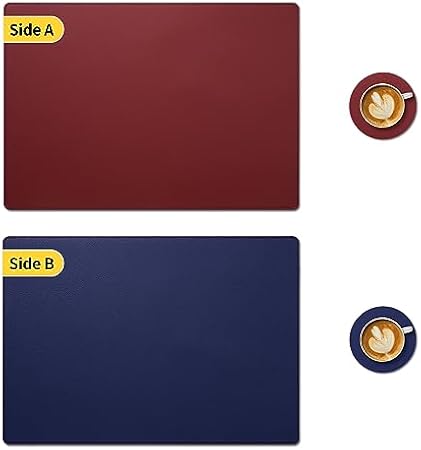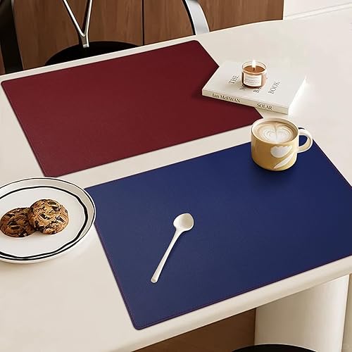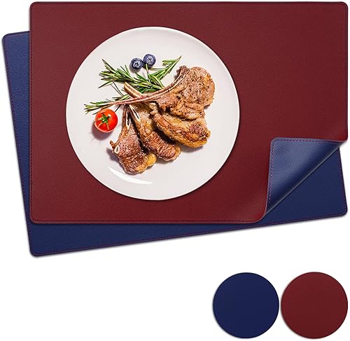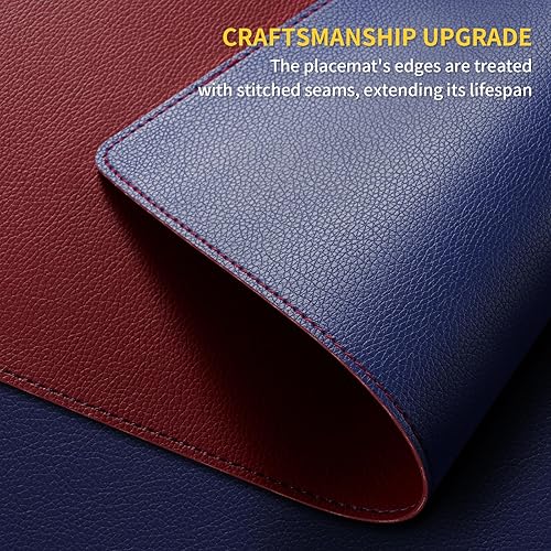 NOSTHEART Set de Table Lavable et Dessous de Verre avec Bordure à Couture, Set de Table en Cuir, Sets de Table Antidérapants et Imperméables à Double Face - Lot de 2, Bleu Royal et Rouge