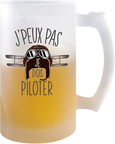 Chope de bière Aviation Pilote j'peux pas | Verre à bière pinte Cadeau humour alcool original pour pilote d'avion | Imprimé en France