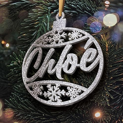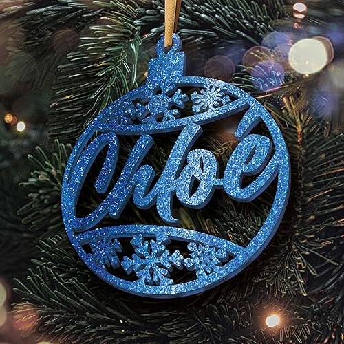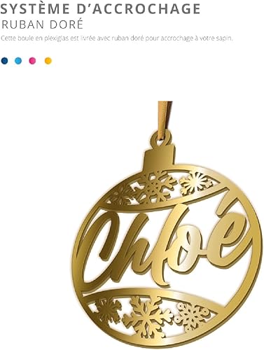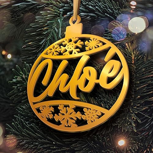 Boule de Noël Personnalisable - Déco de Noel avec Prénom Personnalisé - 16 Couleurs Disponibles - (Modèle Flocon, Glitter Or)
