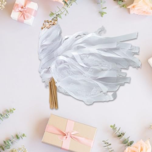 Focenat Baguettes de Mariage avec Clochettes en Ruban de Soie, 30pcs Ruban Mariage, Jeux du Ruban Bouquet Mariée, pour l'anniversaire de Mariage Autres Célébrations de Fêtes (Blanc)