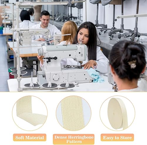 SCHYIDA Ruban à Chevrons en Sergé de Coton 50m x 30mm Ruban de Sangle Blanc Rouleau de Ruban de Biais pour Craft, Couture, Loisirs Créatifs, Travaux Manuels