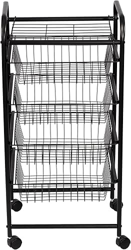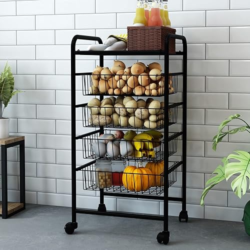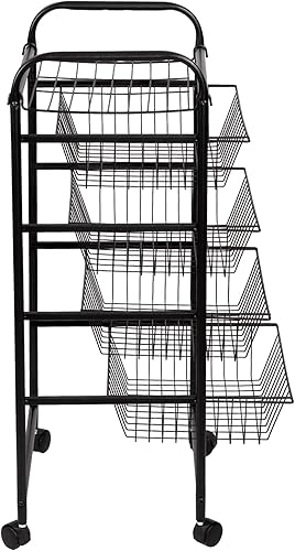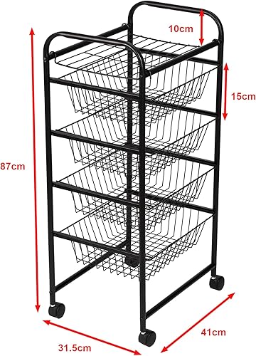 [en.casa] Chariot de Cuisine Roulant Chariot de Service avec 4 Paniers Étagère à Grille Meuble de Rangement Desserte Polyvalent Métal Plastique 87 x 41 x 32 cm Noir