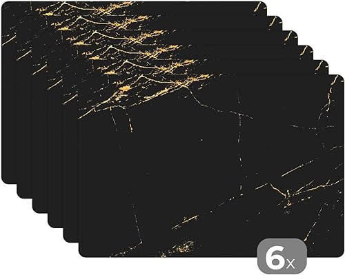Set de Table Marbre - Noir - Or - Chic - Aspect marbre - Design Lot de 6 Dessous de Table 45x30 cm Lavable