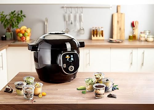 Moulinex Lot de 6 Verrines XA606000 Couvercle Silicone Compatible Multicuiseurs Cookeo, Cookeo USB, Cookeo Connect, Nc, Transparent/Noir