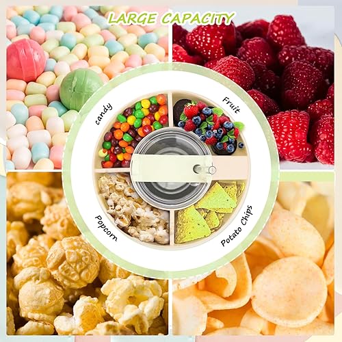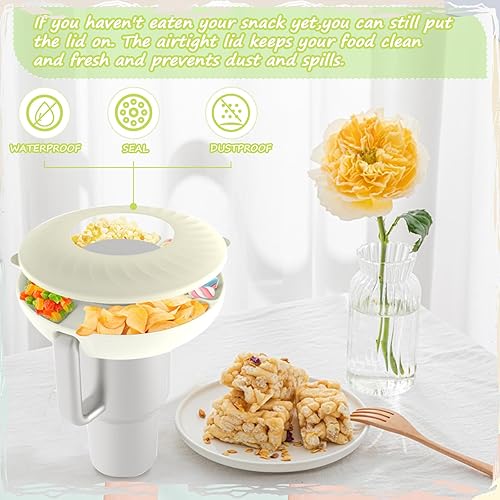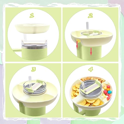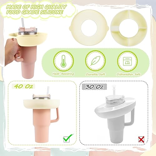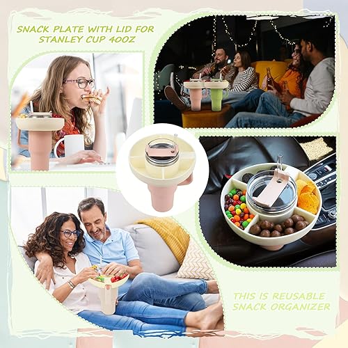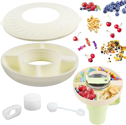 CHRI Bol à collation - Accessoires pour Stanley Cup 100 ml - Assiette à collation avec couvercle et paille - Accessoires pour Stanley Cup (4 compartiments, beige)