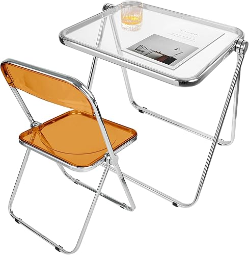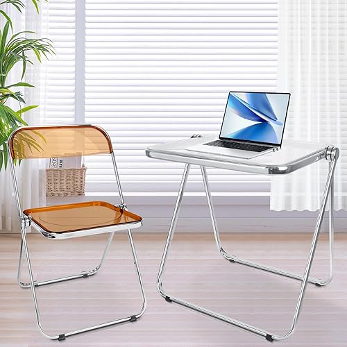 WODFARR Table Pliable,Table Pliante Transparent, idéale pour Petit Bureau, Table d'appoint ou Petit Bureau d'ordinateur,Le Bureau, la Table d'appoint,Pet(02,Tables Transparentes)