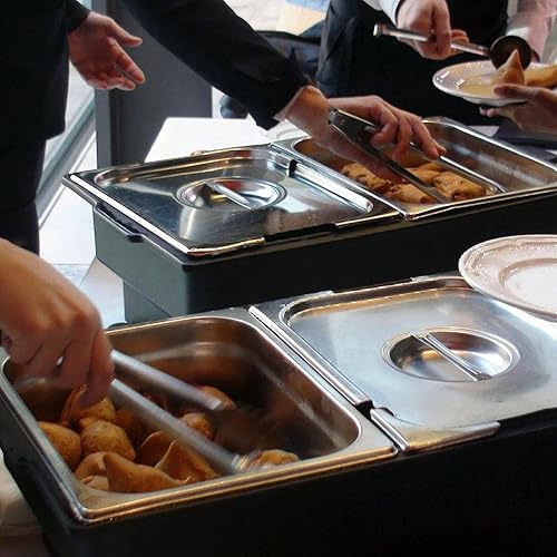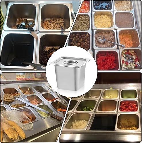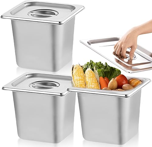 Lot de 3 poêles d'hôtel en acier inoxydable avec couvercle, 1/6 en acier inoxydable avec couvercle (17,6 x 16,2 x 10 cm), résistantes à la chaleur, empilables, avec couvercle, pour buffet