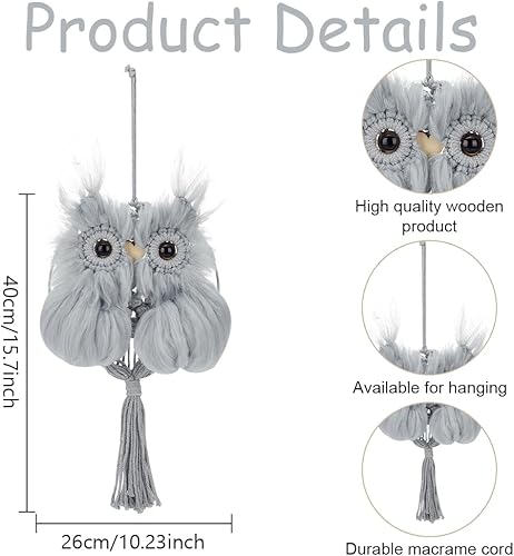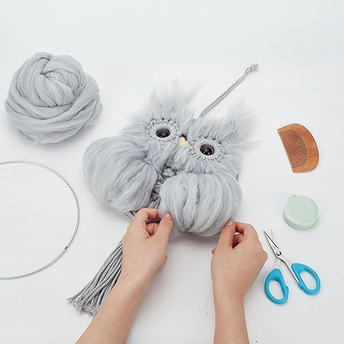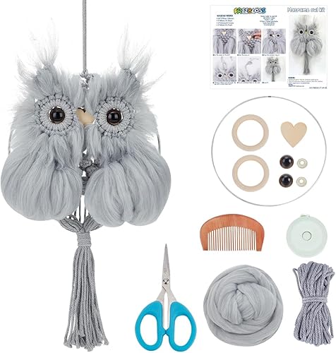 FREEBLOSS Kit Macramé Hibou Set Hibou Macramé Kit Décoration Murale Hibou Macramé Kit Macramé Hibou avec Instructions Kit Macramé Debutant Hibou Macramé Plumes Hibou Tapisseries Murales en Macramé