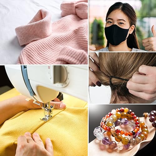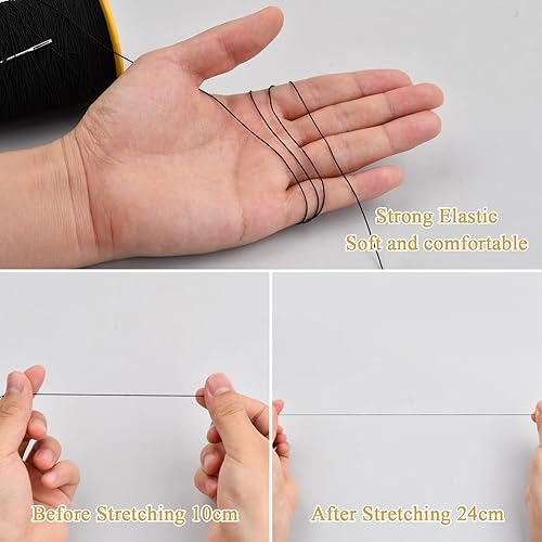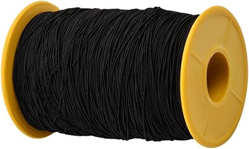 Dokeno Cordons Elastique 0.5mmx320m Fil Tressé pour Collier Cordon d'Artisanat Extensible Corde Élastique à Perles pour Bracelets, Bijoux, Bricolage Artisanat (Noir)