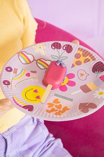 Folat Groovy Hippie Party-Assietes-Boho Girlz-23 cm-8 pièces-Rétro Rainbow Peace pour Décorations, 25031, Rose