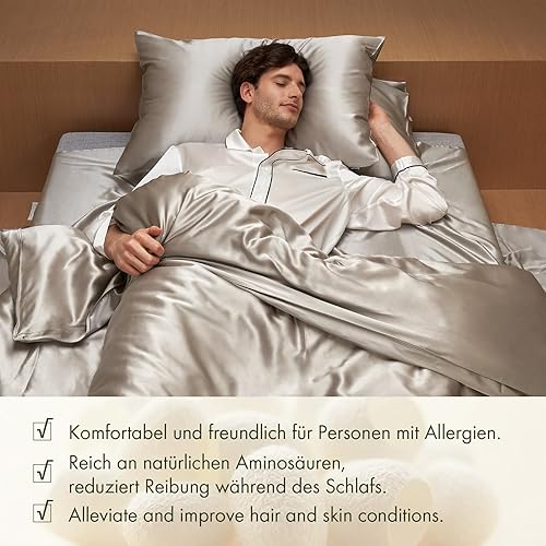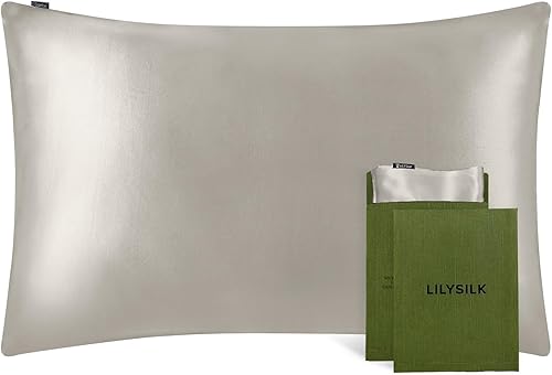 LilySilk Taie d'oreiller en Soie pour Cheveux 19 Momme 1 Pièce Housse de Coussin Soie Naturelle Protège Oreiller Soie de Mûrier Anti-acariens Anti-Ride Taie Oreiller Soie 40x60cm Gris Argenté