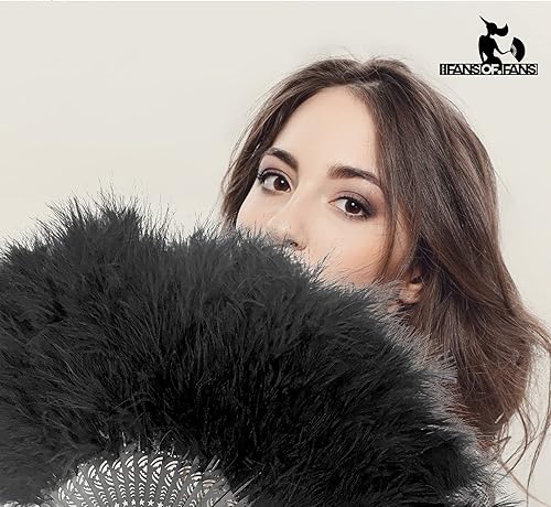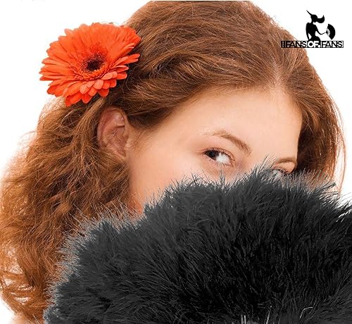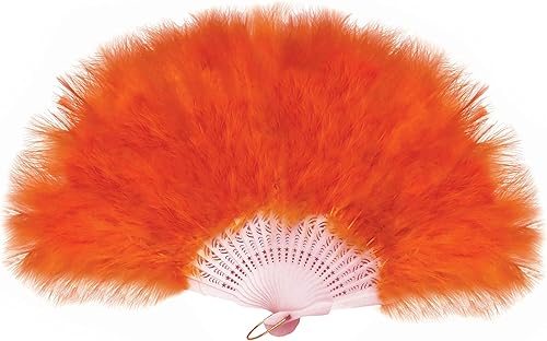 Ventilateur à main en plumes de marabou 45cm, déguisement robe de soirée de noces cadeau en plein air Vintage danse Photoshoot (Orange)